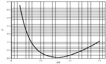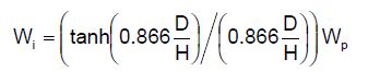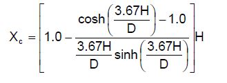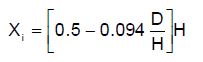 [Ecuación 6.]Cuando D/H <1.33 , las alturas Xi y Xc se determinan de acuerdo con las ecuaciones. 7 y 8.