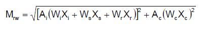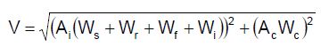 [Ecuación 10.]Se observa que la componente impulsiva del cortante incluye efectos, tales como el peso de las paredes (Ws) , techo (Wr) y fondo del tanque (Wf), además de los respectivos pesos impulsivo (Wi) y convectivo (Wc).