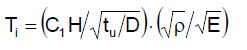 [Ecuación 2.]Donde, tu es el espesor uniforme equivalente de pared del tanque, Þr la densidad del fluido, Ci el coeficiente para determinar el período impulsivo (Figura 2), KS el coeficiente de oleaje del período convectivo, D el diámetro nominal del tanque y H el nivel máximo de diseño del líquido.