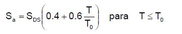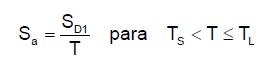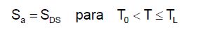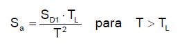 [Ecuación 14.]Donde K, es el coeficiente utilizado para ajustar la aceleración espectral de un amortiguamiento del 5 % al 0.5 % (K=1.5 , según API-650), es la ordenada de aceleración espectral para períodos cortos, SD1 la ordenada de aceleración espectral para períodos largos y TL el período de transición.