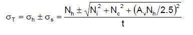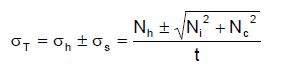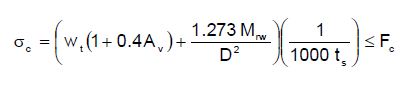 [Ecuación 23.]Para tanques autosoportados, en los que se considera que no ocurre levantamiento, el esfuerzo máximo de compresión en la base de la pared del tanque se determina igualmente de acuerdo con la ecuación 23. Si se tiene en cuenta que hay levantamiento, entonces el esfuerzo máximo de compresión se determina a través de la ecuación 24.