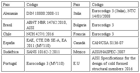 La carencia de un reglamento actualizado en Cuba motiva que se utilicen códigos de otros países. Según criterios de los autores las Especificaciones para el Diseño de Miembros Estructurales con Perfiles de Acero Doblados en Frío, del AISI, constituye la principal guía de diseño para estos tipos de estructuras.