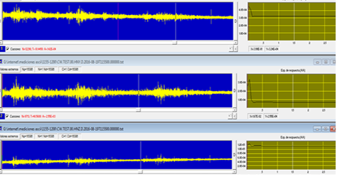 Para el procesamiento y análisis de los registros obtenidos se emplearon programas que permiten un rápido análisis y procesamiento, donde se resumen los valores mínimos y máximos de velocidad expresados en mm/s, obtenidos en el punto. Estos fueron: