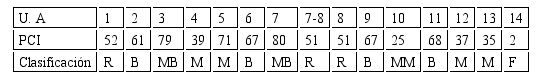 En la Tabla 2 se resumen los valores obtenidos de PCI para cada unidad.