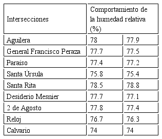 Humedad relativa. No debe haber una variación brusca durante las mediciones (superior al 10 %) y se midió en dos ocasiones con la ayuda de un Termohigrómetro modelo CA-846, de fabricación francesa. Los resultados del comportamiento de la humedad relativa aparecen en la Tabla 3.