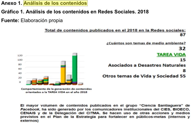 Como se aprecia, existe un predominio de productos comunicativos audiovisuales. Los géneros más utilizados son el reportaje y los comentarios. La fotografía es principalmente de archivo, por lo que no ofrece actualidad del tema. Mensajes que reiteran contenidos de la misma forma, en todos los soportes y medios. (Ver anexo 1). Gráfico de los contenidos en redes sociales 2018.
