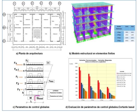 La evaluación de los parámetros de control globales monitoreados (Figura 1c) para las variantes de edificios generadas es esencial para diferenciar estas variantes por su comportamiento sísmico, el cual dependerá mucho de la peligrosidad sísmica de las zonas donde se ubican. Esto permite, además de cuantificar la influencia de los parámetros variables seleccionados en los parámetros de control, simplificar la evaluación de los parámetros de control locales, corroborar el diseño conceptual y aportar testimonios importantes para llegar a conclusiones y recomendaciones acerca de las variantes que se construirán en cada una de las zonas sísmicas.