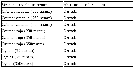 El café de zonas bajas posee ranuras cerradas y el de zonas altas ranuras abiertas (Galvez, 2016).