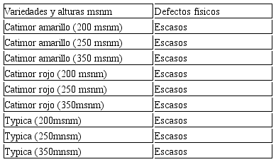 En la tabla 3 se puede apreciar que las muestras de café a las que se les realizó el experimento poseen escasos defectos físicos, lo que demuestra que fueron recogidas y beneficiadas de una manera correcta.