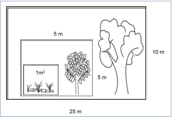 Mediante un muestreo aleatorio simple, disponiendo unidades de muestreo permanentes, se establecieron 25 parcelas de 10 m x 25 m (250 m2) en un sistema agroforestal cafetalero de 8 ha de superficie total. En cada unidad de muestreo se instauraron dos subparcelas de 1 y 5 m2, en función de la determinación del carbono retenido por los diferentes depósitos existentes en el área de estudio (Figura 2).