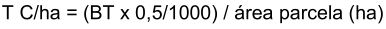 El resultado obtenido se conoce como Densidad de carbono (T C/ha), la cual se promedia con los resultados de las otras parcelas.