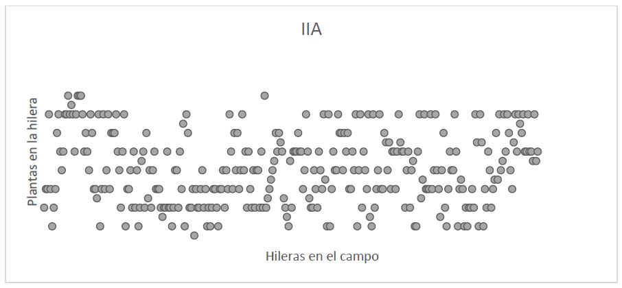 La ejecución del trabajo consistió primeramente en realizar un croquis del área con el objetivo de ubicar cada planta objeto de estudio dentro de esta. Se marcaron 245 plantas/ha-1, distribuidas una planta cada cinco, por hilera, y se repite esta operación cada cuatro hileras, para determinar la presencia de los organismos en las plantas seleccionadas. A la planta escogida dentro del campo se le evaluaron cuatro ramas por cada estrato, (superior, medio e inferior), dos en sentido de la hilera y dos en sentido de la calle, lo que representa 12 ramas por planta en total. A cada rama se le realizó el conteo total de hojas (TH) y las afectadas por cada uno de los organismos evaluados, con lo cual se determinó el Índice de Infección para la roya, la antracnosis y para el minador, según la metodología empleada por Carracedo et al. (1995). Para el caso de la broca del cafeto, se realizó el conteo total de granos en ramas y se evaluaron los afectados (Rodríguez et al., 2013).