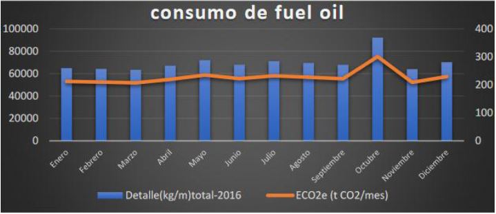 Detrás de la producción de los surtidos de esta UEB, existe un consumo de materiales y energía para lo que se calcula la huella de carbono. Para ello se toma en cuenta el abastecimiento de combustible en cada mes. Se detalla a continuación el consumo mensual de fuel oíl de la caldera destinada a la producción. (Ver Gráfico 3)
