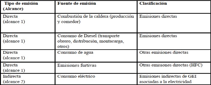 Para esta UEB las emisiones de alcance 1 son calculadas con base en las cantidades adquiridas de combustibles comerciales (gas natural, diésel, gasolina, entre otros), utilizando los factores de emisión publicados (Ver Tabla 1). Las emisiones de alcance 2 se calculan primordialmente a partir del consumo medido de electricidad. Las de alcance 3 se calculan primordialmente a partir de los datos de las actividades de la empresa, como el uso de combustible o los kilómetros recorridos por pasajeros, y factores de emisión publicados o de terceras partes. En la mayoría de los casos, si los factores específicos de emisión de la fuente o instalación están disponibles, es preferible utilizar estos a factores de emisión más genéricos o generales.