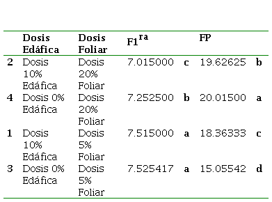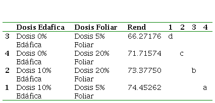 Dosis 0% Edáfica y Dosis 5% foliar (testigo)