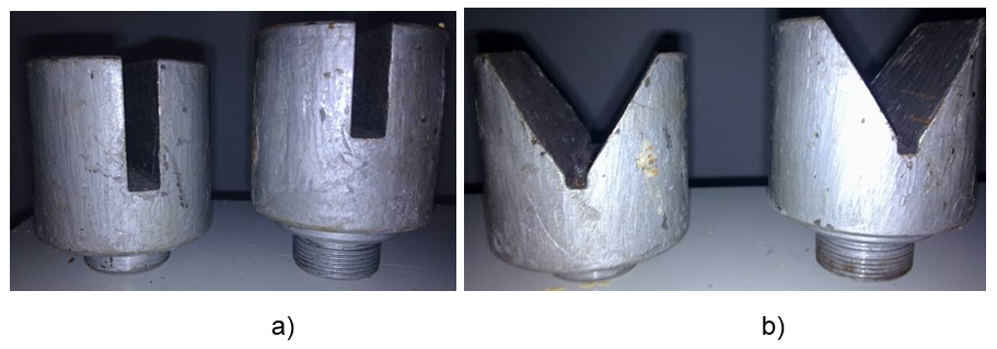 El procedimiento propuesto en este trabajo se aplica en una máquina universal de ensayos DNS200 (Figura 1). La misma consta de un cabezal superior fijo y uno inferior móvil que es donde se encuentra la celda de carga. A esta es posible intercambiarle el punzón para el tipo de ensayo a realizar. Luego en la bancada de la máquina también se encuentra un dispositivo portapunzones, que permite el intercambio de los mismos, en dependencia del experimento. Entre los ensayos originales que se podían realizar en la máquina de ensayos no estaban los de pandeo, por lo que fue necesario diseñar y fabricar los dispositivos que permitieran llevar a cabo los experimentos en cuestión. Las condiciones de apoyo influyen de gran manera en el valor de la carga crítica. Para evaluar esta influencia es necesario contar con dispositivos que simulen las diferentes maneras en que se apoya la barra comprimida. Los dispositivos construidos para apoyar las barras en los ensayos a pandeo se muestran en la Figura 2.