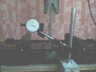 9. Se ubica el indicador de carátula, de manera que el sensor quede rozando ligeramente la probeta. Como no se conoce hacia qué sentido se flectará la probeta se coloca el sensor de manera que ocurra una lectura en el reloj. Recomendamos que sea hasta que la aguja se posicione en el cero de la escala, para poder realizar la lectura cuando se comience a deformar la probeta.