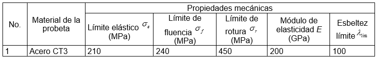 Ban et al., [12] propusieron un nuevo enfoque de diseño. Para ello se basaron en los resultados de los ensayos a compresión realizados sobre columnas a las que les variaron la esbeltez y la sección transversal. Posteriormente compararon los valores obtenidos con cálculos analíticos, obteniendo buena concordancia con los primeros. Otros resultados experimentales fueron evaluados por Shi et al., [13] quienes consideraron que la columna tenía cierta curvatura inicial, así como excentricidad en la aplicación de la carga de compresión. Igual se utilizó el método de los elementos finitos para contrastar los resultados experimentales. En [14] se estudió el pandeo de bambú con el propósito de ser usado con fines estructurales, así como el comportamiento de elementos de fibras de carbono fue ensayado en otro trabajo. [15] También se realizaron estudios experimentales por Ban et al., [16] quienes analizaron el pandeo de columnas soldadas de diferentes secciones transversales y consideraron la presencia de defectos iniciales en la geometría, así como las tensiones residuales. Estos autores obtuvieron nuevas formas para la curvatura de las columnas comprimidas. También se estudiaron columnas soldadas por Yang et al., [17] quienes también consideraron defectos en la geometría y las tensiones residuales debidas al proceso de soldeo y emplearon el método de los elementos finitos para complementar su investigación. Una teoría para el estudio del pandeo de columnas con comportamiento inelástico fue propuesto por [18]. Se tiene en cuenta el efecto de la flexión y la torsión. Para validar la teoría propuesta se comparó los resultados con valores experimentales seleccionados de ensayos a columnas de aluminio y acero inoxidable.