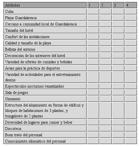 Fase 4. Determinar la importancia, diferenciación y grado de presencia percibidos de los atributos que caracterizan los productos hoteleros
