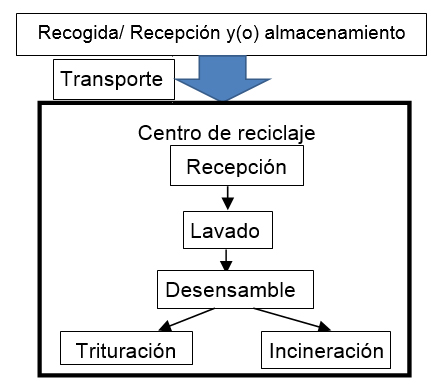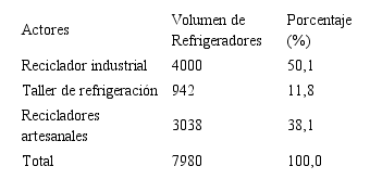 En la tabla 1 se muestran los volúmenes de refrigeradores generados para el reciclaje por cada uno de los grupos analizados. De forma general se puede plantear que en el proceso de reciclado de los refrigeradores sigue la estructura que se muestra en la figura 1.