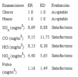 En lo referente de los niveles de contaminación al aire (tabla 9), se logran controlar los niveles de emisión de sustancias nocivas, de manera que todos alcanzan valores por debajo del deseado, resultando en un comportamiento satisfactorio a no ser en la emisión de olores y humo en los que no se dispone de métodos de medición y por convenio se asumió el valor unitario. Comportamiento similar se observa en lo relativo a la contaminación del agua (Tabla 10), donde los parámetros bajo control resultan satisfactorios o aceptables. Estos comportamientos en general también obedecen a las medidas de control ambiental implementadas por la industria que es la que predomina por sus niveles de producción en estas emisiones.