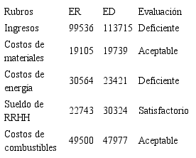 En medición de las variables económicas se obtuvieron los resultados que se muestran en la tabla 12. Como se observa, los ingresos resultan deficientes lo que responde a varias razones; primero porque la misión fundamental de la industria no responde a una meta económica sino ecológica, aunque no presupone las perdida. Además, los recicladores no logran alcanzar los niveles de recolección deseados, mientras en el caso de los talleres estos poseen una cartera de productos mucho más amplia que se encargan de amortiguar los efectos de los altos costos del reciclaje de los refrigeradores y concentran sus ingresos en otros productos. Los costos de materiales y combustibles, aun cuando superan lo planificado, no lo hacen en más de un 10% por lo que se consideran aceptable. En lo relativo a los costos de salario, si bien desde el punto de vista económico son satisfactorios pues disminuyen gastos, desde el punto de vista social son negativos pues afectan los ingresos de los trabajadores. Los costos de la energía son deficientes por las razones explicadas cuando se analizó el comportamiento del consumo de energía eléctrica.