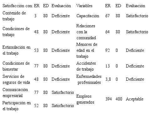 En las variables sociales se lograron los resultados mostrados en la tabla 13