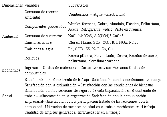 Paso 4. Establecer métodos y fuentes de medición de las variables por dimensión y procesos: Para cada una de las variables y procesos se establecieron los métodos de medición. En el caso de las variables de la dimensión ambiental y económica la entidad contaba con medios de medición e indicadores para su determinación. De igual forma, en la dimensión social se diseñaron encuestas para evaluar el estado de las variables en ella contenida, en las que se utilizó una escala dicotómica, considerando que el nivel escolar de los trabajadores no era muy alto.