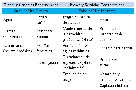 Se han identificado en esta primera etapa los bienes y servicios ecosistémicos siguientes: madera, turismo, agua, suelos y remoción de carbono.