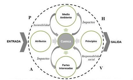 Un sistema de gestión para las cuencas que los diagnostica- valoriza, planifica-organiza, implementa-conserva y monitorea-controla y mejora en una perspectiva ambiental y socialmente responsable, con secuencia lógica, interrelación entre sus partes e impacto en el entorno.