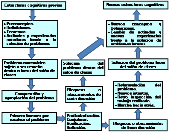 El bloqueo del problema es superado por el estudiante cuando hace una retro inspección de su trabajo y hace una marcha hacia atrás, dando paso a nuevas ideas que, al desarrollarlas, permiten alcanzar la solución del problema.