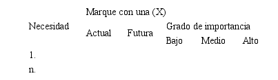 El grupo de trabajo sobre la base de la relación de necesidades identificadas en el paso anterior confecciona la encuesta cuyo diseño se presenta a continuación.