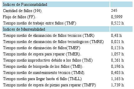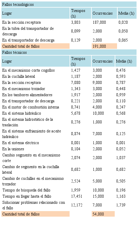 Mediante el fotocronometraje también se detectaron los principales conjuntos y subconjuntos donde los fallos tecnológicos y técnicos ocurren con mayor frecuencia durante la explotación de la máquina, lo que permite determinar el tiempo medio de restauración de estos fallos como puede observarse en la siguiente tabla.