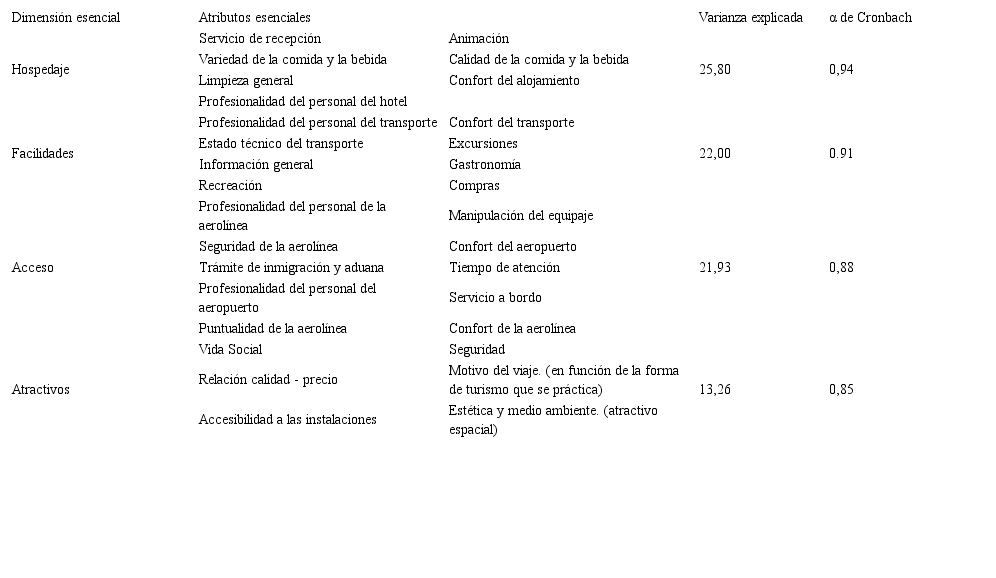 De igual modo se aplicó a un total de 2723 turistas en el momento de su partida del destino una encuesta diseñada para evaluar la satisfacción de los turistas en la cual se evaluaban las dimensiones y atributos que se resumen en la tabla 2.