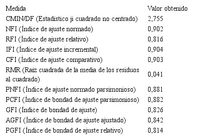 Las medidas específicas del ajuste del modelo se muestran en la tabla 3. Se consideran para la medida de ajuste el default model.