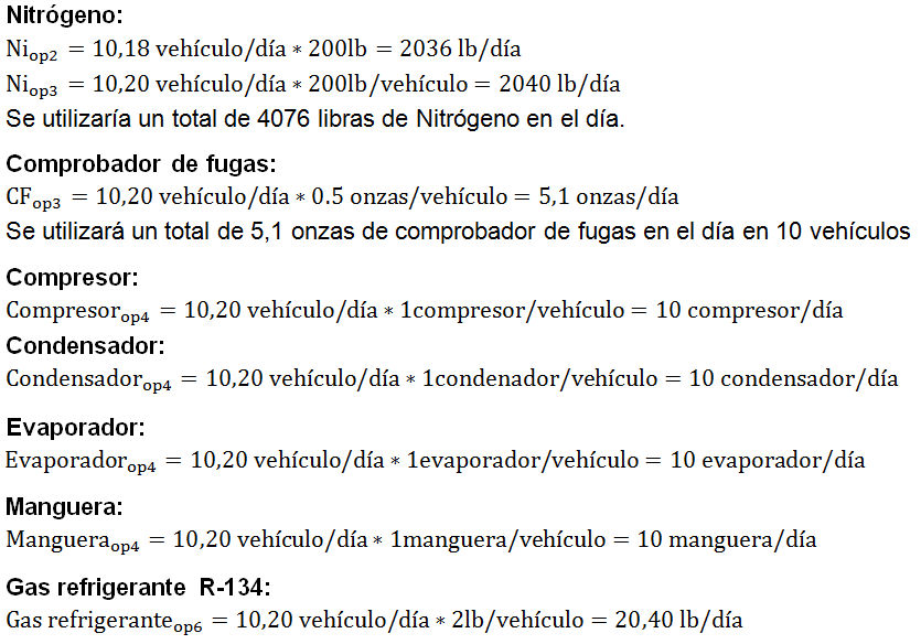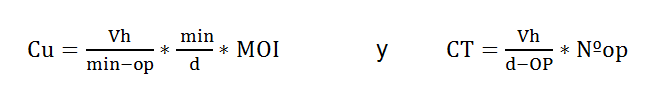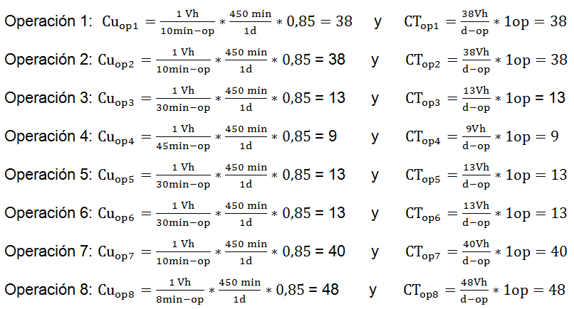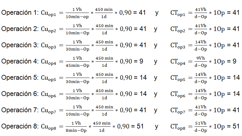 La determinación de las capacidades productivas se realizó para cada una de las operaciones y utilizando las siguientes fórmulas:
