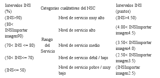 Después de calcular el INS, se procederá a evaluar el nivel de servicio mediante valores máximos aceptables por este indicador recogido en la tabla 2.