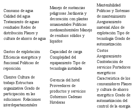 En su comportamiento práctico, en la gestión de los SS.TT. en hoteles de sol playa, se identificaron tres dimensiones que la distinguen: una dimensión ambiental, relacionada con la energía, el agua, los desechos y otros; una dimensión tecnológica que gestiona el ciclo de vida de los activos fijos (Equipos, sistemas tecnológicos e instalaciones); y una dimensión social que gestiona las relaciones interpersonales que se establecen en su desarrollo. Esta concepción se corroboró en los análisis empíricos realizados en los hoteles objeto de estudios y representa una mejor aproximación a la práctica en la hotelería y un mejor entendimiento.