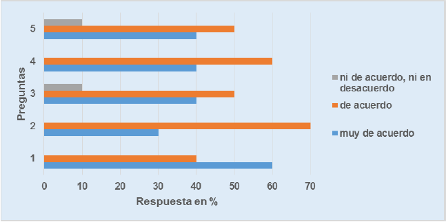 En la figura 2 se muestran los resultados de la encuesta expresados en porciento. Las valoraciones obtenidas de la opinión de los especialistas, a partir de las cinco consideraciones tomadas como base, permiten evaluar la propuesta en general como favorable.