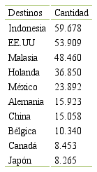 En correspondencia con los resultados de la Tabla1 Indonesia refiere el mayor volumen de exportación para un 21.25% del total del año 2018. Es destacable que hasta el 80% de las exportaciones están concentradas en los países Indonesia, Estados Unidos, Malasia, Holanda y México. Del mismo modo, gran parte del valor añadido del procesamiento del cacao que proviene de estos países en una amplia oferta de chocolates proviene de estos países.