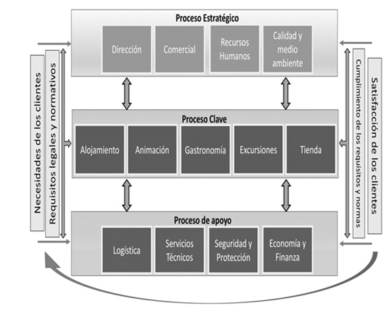 Esta herramienta posee un fuerte vínculo con la estrategia de la organización a partir de la identificación de los macro-procesos, así como la necesidad de enfocar las acciones hacia el logro de la misión y la visión. Para una mejor comprensión se presenta el mapa de procesos de la organización en la figura 3.