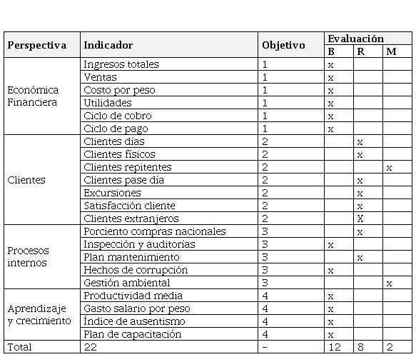 Mediante el trabajo con el grupo de experto seleccionado y la revisión documental a los informes de la empresa, se lograron definir 22 indicadores. Se realizó un análisis correspondiente a los objetivos de trabajo, los cuales fueron seleccionados y organizados por perspectivas, los que se muestran el CMI de la tabla 1.