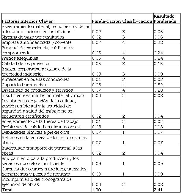 Según los resultados de esta matriz la empresa tiene una situación interna ligeramente desfavorable, con predominio de las debilidades sobre las fortalezas.