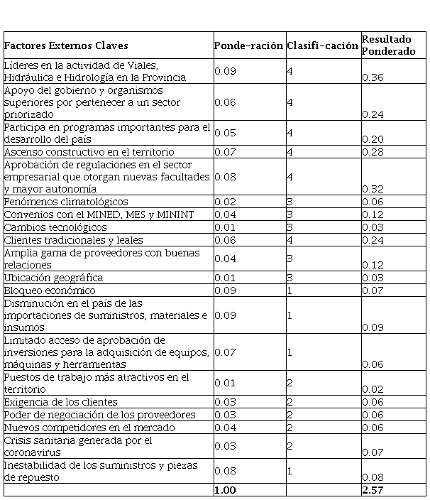 La empresa tiene una situación externa ligeramente favorable, con predominio de las oportunidades, las cuales deben aprovecharse con el objetivo de atenuar los efectos de las amenazas.