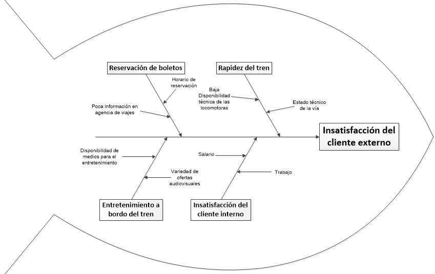 Los resultados obtenidos revelan que el cliente externo promedio se encuentra satisfecho con el servicio, aunque existen reservas de mejoras. Los principales problemas que afectan la eficacia de la calidad de la gestión en el desarrollo de los servicios en el establecimiento están asociados a: la reservación de boletos, entretenimiento a bordo del tren y la rapidez del tren.