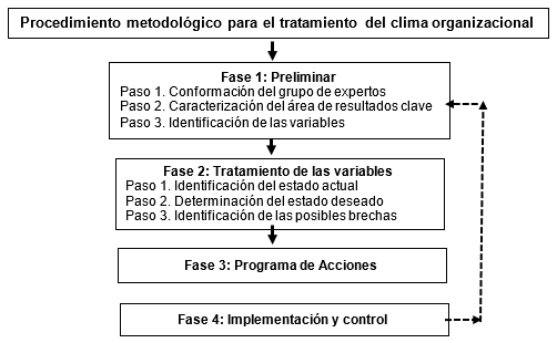 Abstract: The present work is based on the study of the main variables that affect the organizational climate given its influence on the conduct and behavior of its members. The organizational climate is the reflection of the organizational culture and a way in which the worker perceives the performance, productivity and satisfaction of the work he/she develops; The objective of this research was: to propose a methodological procedure of the work environment based on tools with scientific rigor that allow the treatment of the desired work environment in the Base Business Unit of the Various Production Company of Santiago de Cuba. Theoretical and empirical methods were used for its development. As a significant result, the current and desired state of the variables with the greatest incidence in the work environment was evaluated, identifying their gaps and an action program was developed that allowed improving the treatment of the organizational climate in this context.