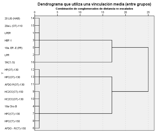 En la presentación de las clases y sus características organolépticas se observa que a una distancia de quince se dividen en dos grupos de indicadores, el primero en clases inherentes a una fortaleza baja donde agrupa a clases con características similares y el segundo a clases con fortaleza marcada que se diferencian de forma representativa con las clases que componen el primer grupo. Prosiguiendo el análisis se observa que la clase TRCT-70 (tabaco reconstituido) se aísla en cuanto a sus características al resto de las clases: