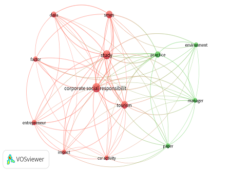 Cluster 1: corporate social responsibility, csr activity, data, entrepreneur, factor, impact, smes, study, tourism.