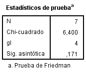 La concordancia de las evaluaciones fue analizada mediante el análisis de varianza de Friedman (Tabla 1). El procesamiento de los datos a través del programa estadístico Statistical Program for Social Sciences (SPSS) mediante el método señalado determinó que como el nivel de significación para un valor de chi-cuadrado igual a 6,4 y con 4 grados de libertad, es 0,171 (mayor que 0,05) por lo que se rechaza la hipótesis nula y se afirma que existe consenso entre los especialistas para aseverar que la metodología presentada cumple con los indicadores. De esta forma queda valorada de forma positiva la propuesta y se encuentra en condiciones de ser aplicada en destinos turísticos.