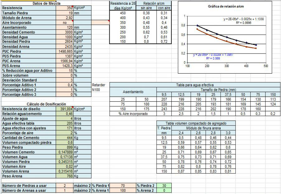 Este diseño de mezcla con relación agua/cemento de 0,46 es muy empleado en la construcción de estructuras costeras del Ecuador, principalmente en la provincia de Manabí.